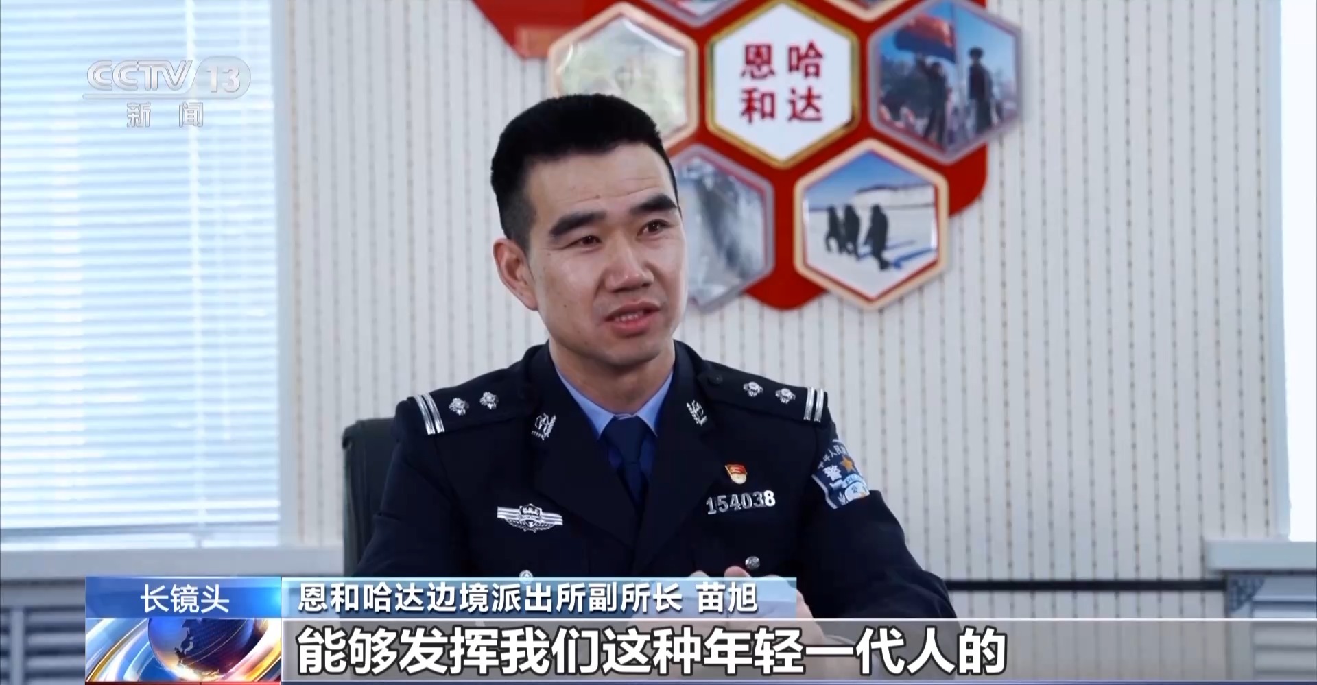 恩和哈达边境派出所副所长 苗旭:感受到咱们这些老民警这种谆谆教诲,给我们讲解辖区的情况,对他们在这种无人区的坚守,很感动也很敬佩,也希望能像他们一样,发挥我们年轻一代人的责任和担当。